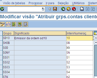 Localize seu grupo de contas criado e atribua Intervalo de numeração 6 ou outro de preferencia, este número, ou outro definido, é usado para separar intervalos para cada tipo de cliente criado, EX: Cliente Jurídico 06 (ex 6001), Cliente físico 12 (ex 12001), Cliente ocasional 18 (ex 18001). Quando aparecer o erro "os dados estão incompletos. Verificar!" no momento em que for cadastrar um cliente, significa que o grupo de contas não está associado a função parceiro..